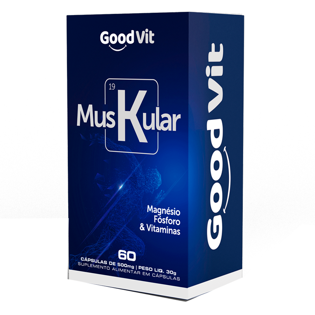 Muskular é um suplemento com fosfato de potássio dibásico, magnésio e vitaminas D, B1 e B12, desenvolvido para complementar a nutrição diária.